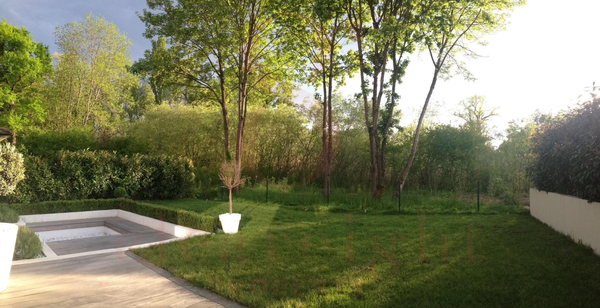 Toutes les pièces bénéficient d’un accès direct aux terrasses en bois exotique et au jardin.